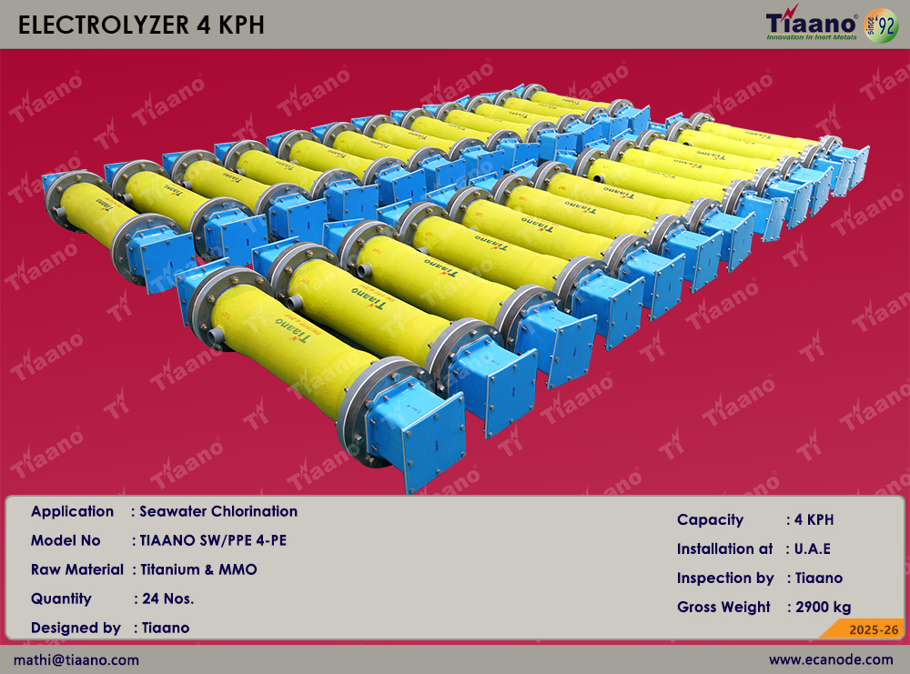 Industrial facilities across the globe face a persistent challenge: ensuring safe, efficient, and cost‑effective seawater chlorination. Traditional methods often struggle with durability, efficiency, and long‑term sustainability. This is where Electrolyzer 4 KPH for seawater chlorination emerges as the definitive solution, engineered and supplied by Ti Anode Fabricators Pvt. Ltd. (Tiaano).