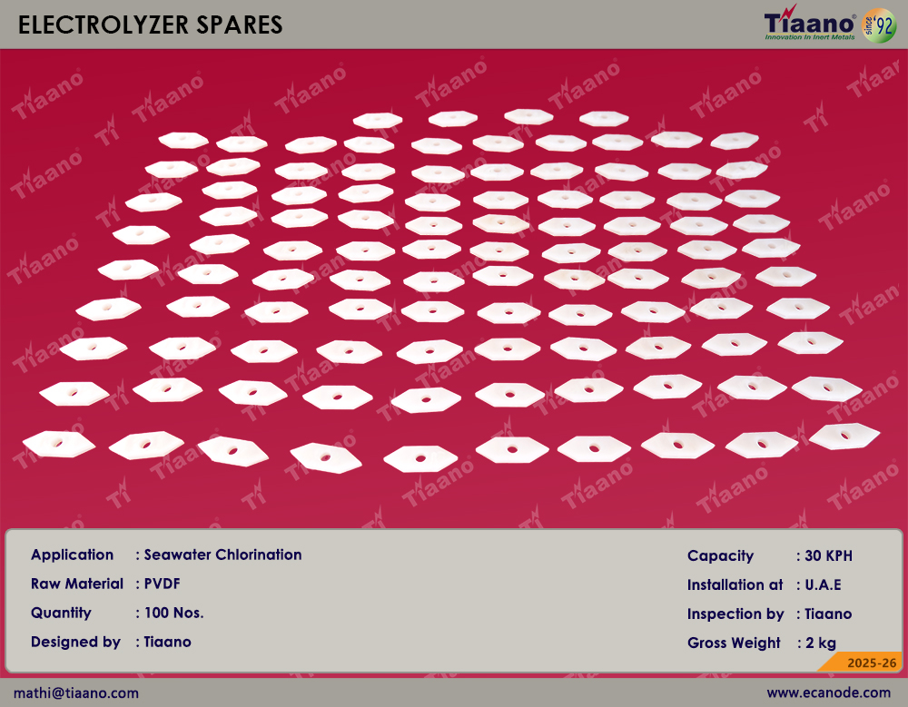 Ti Anode Fabricators Pvt. Ltd. provides precision-molded and machined components specifically for 30 KPH chlorination units. The technical specifications for our current U.A.E. supply include: